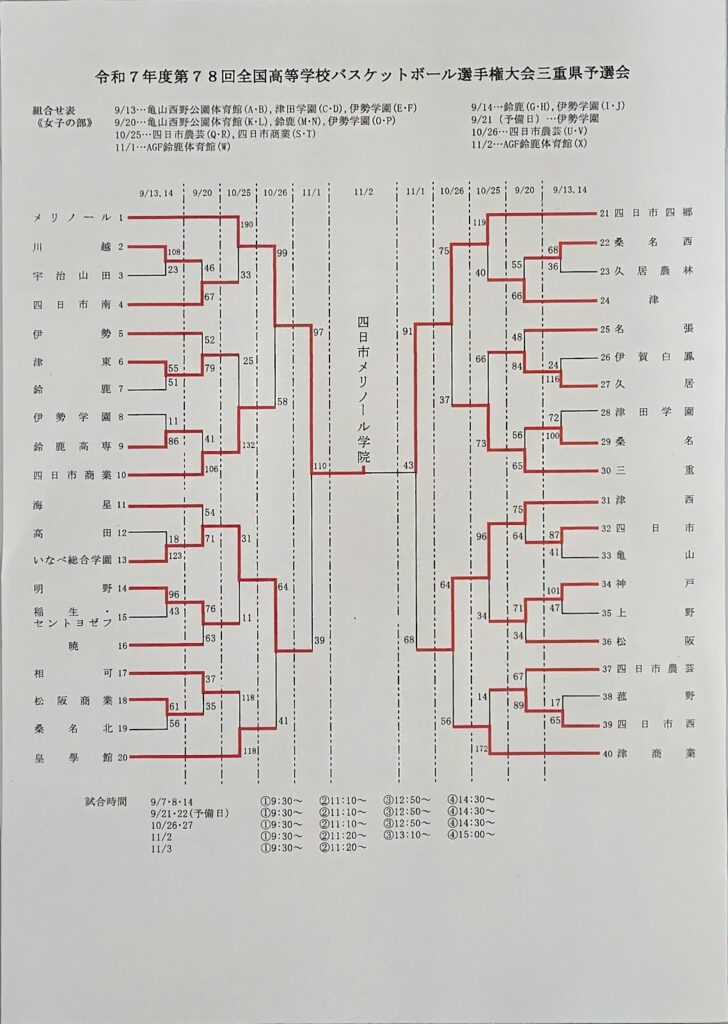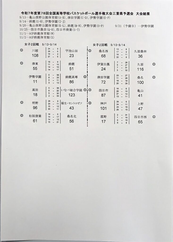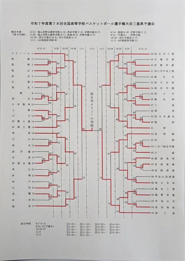 令和7年度第78回全国高等学校バスケットボール選手権大会三重県予選会