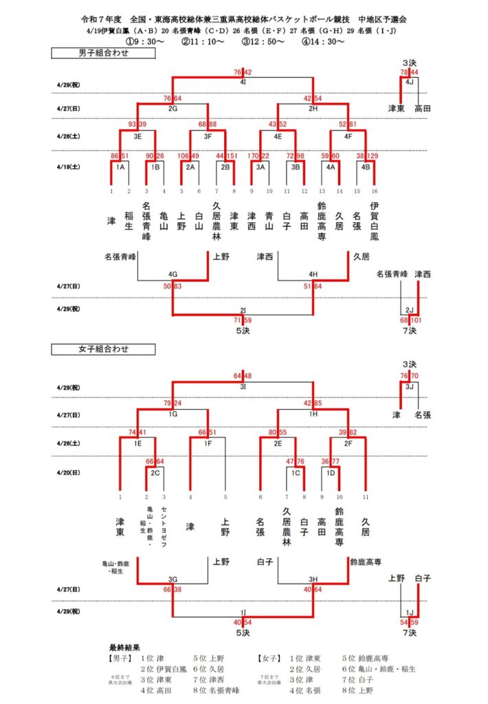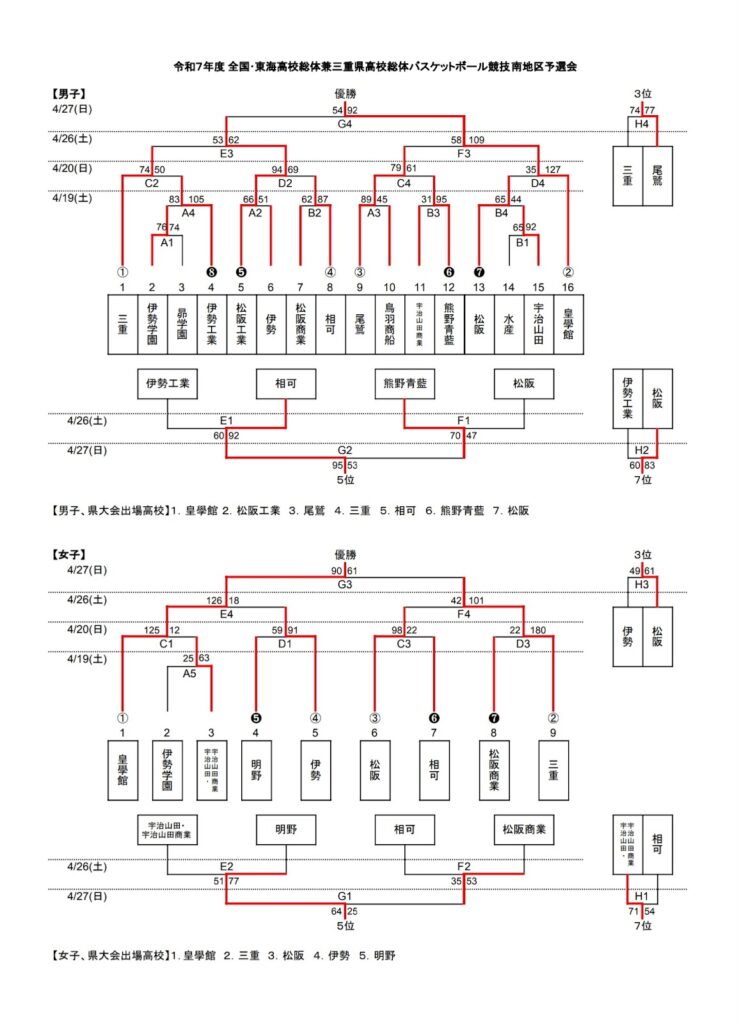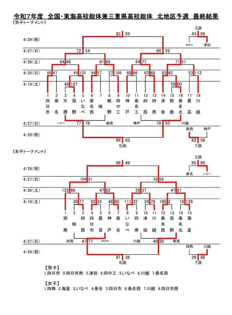 令和7年度 全国・東海高校総体圏三重県高校総体 各地区予選