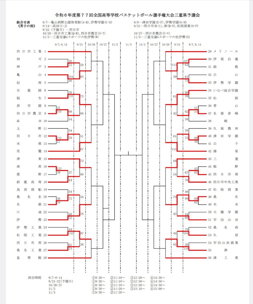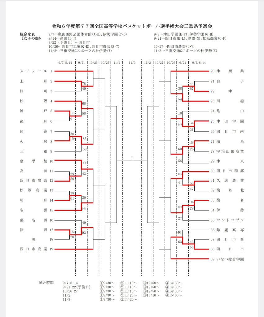 令和6年度第77回全国高等学校バスケットボール選手権大会三重県予選会