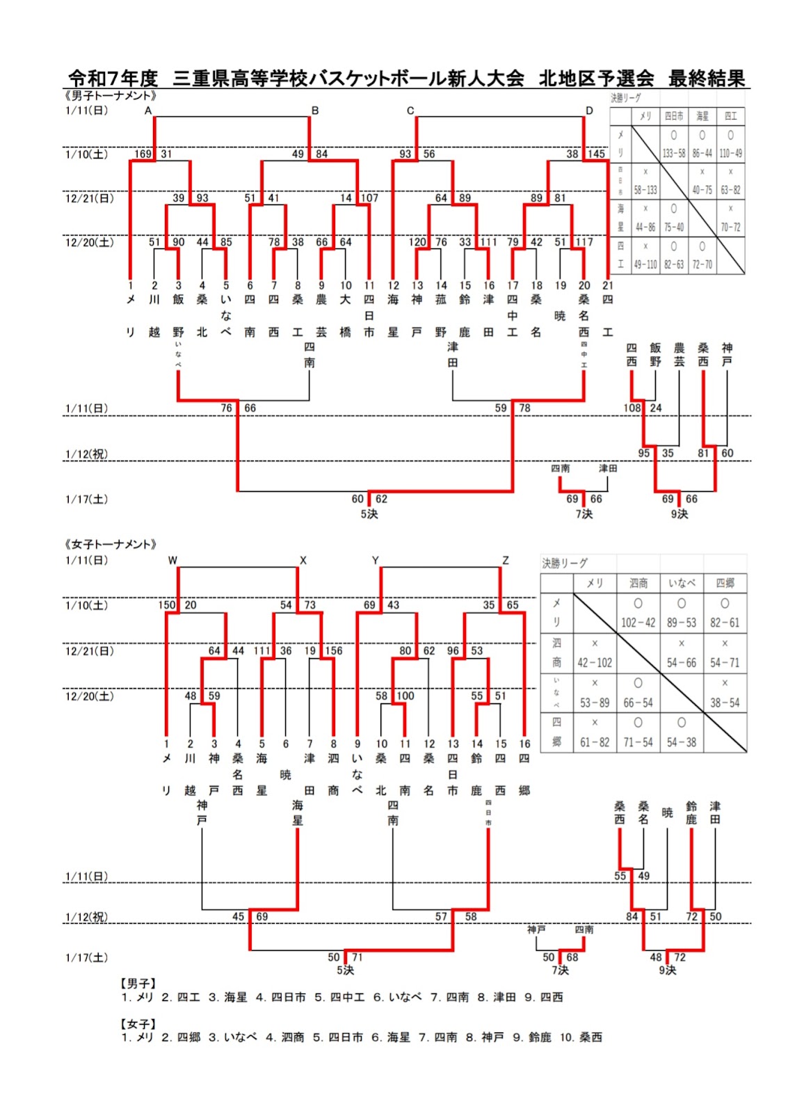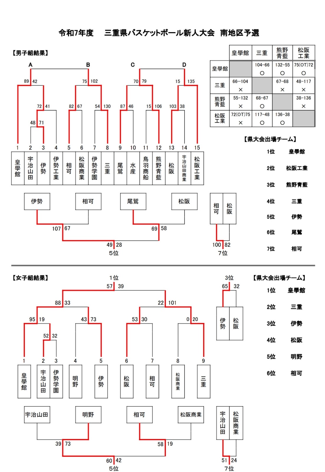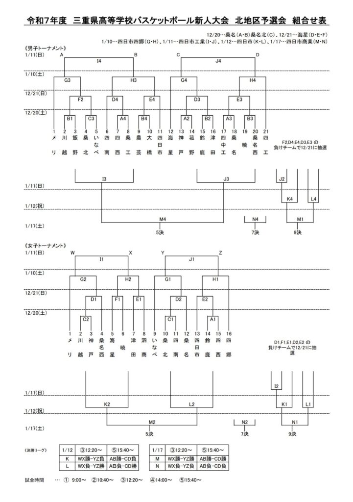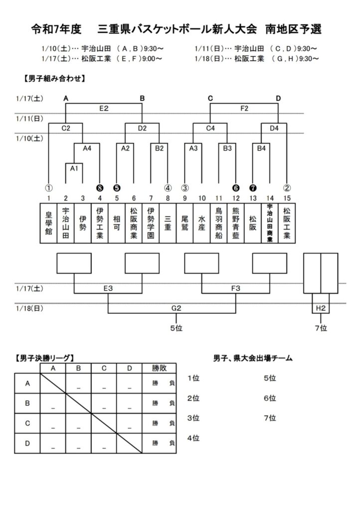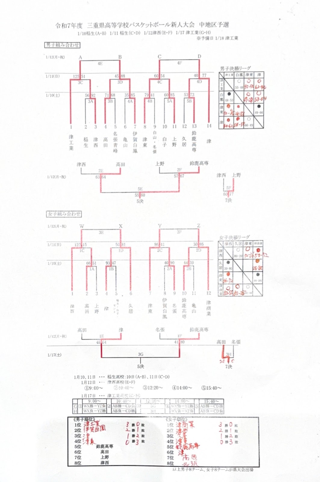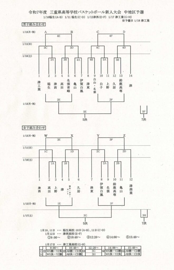 令和7年度 三重県高等学校バスケットボール新人大会各地区予選会